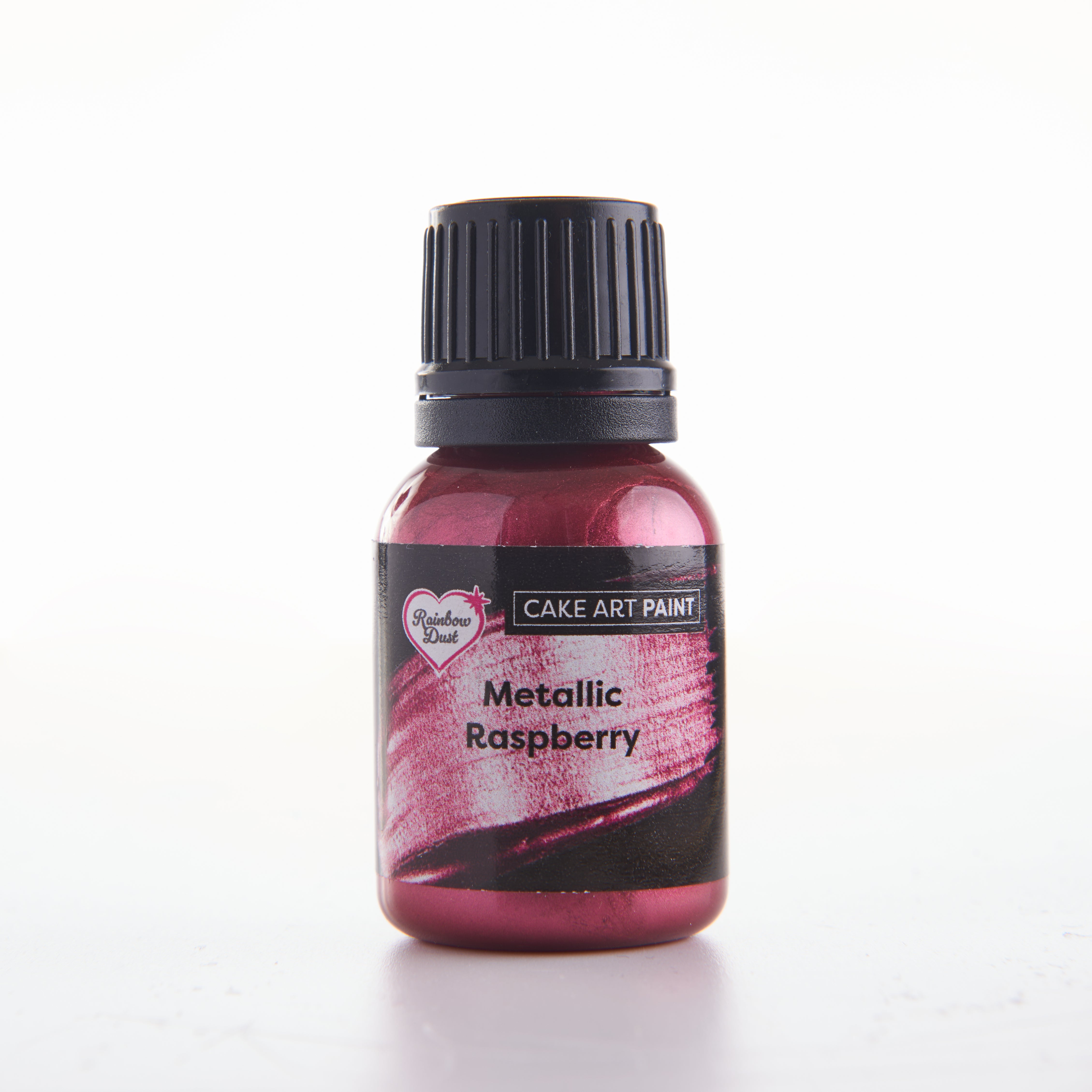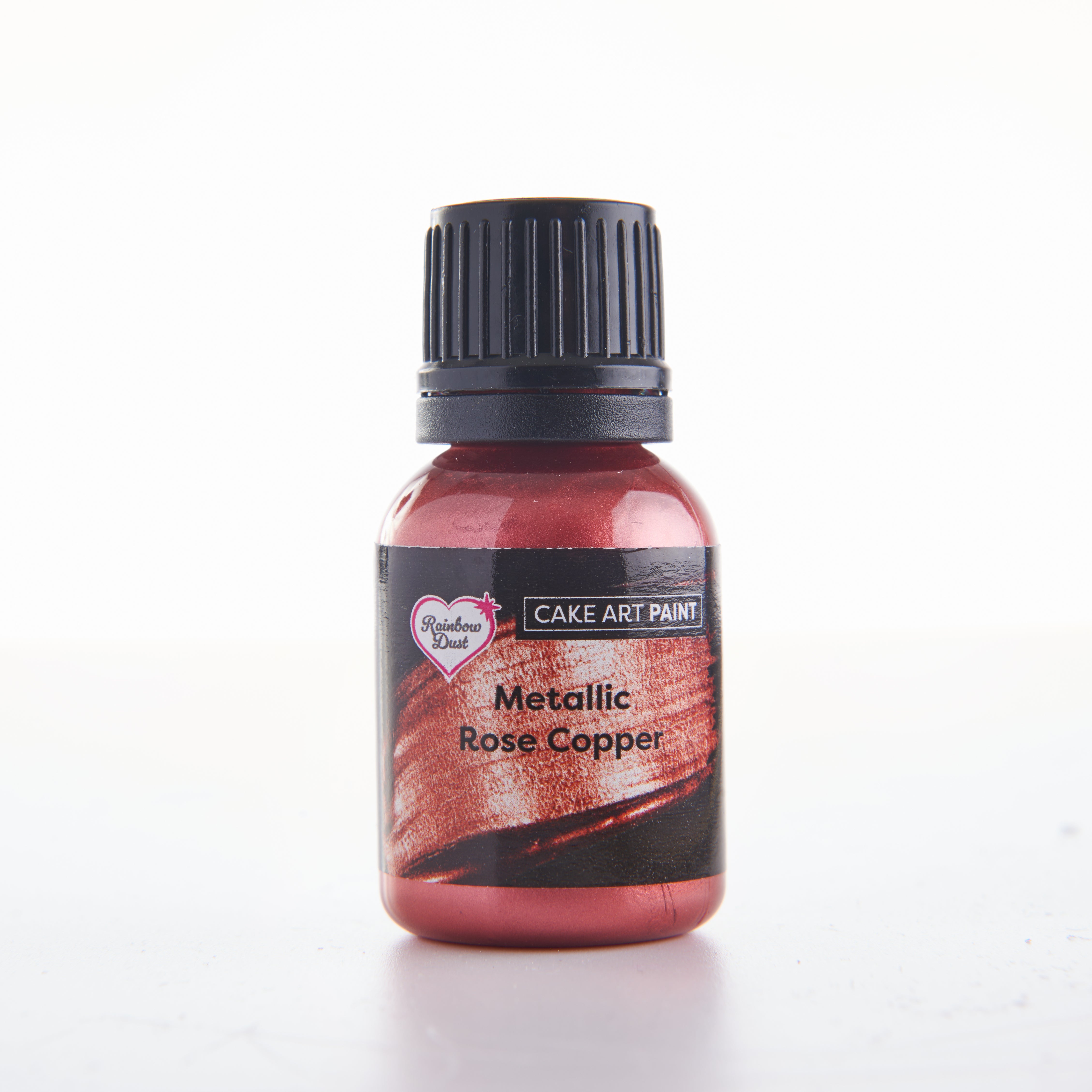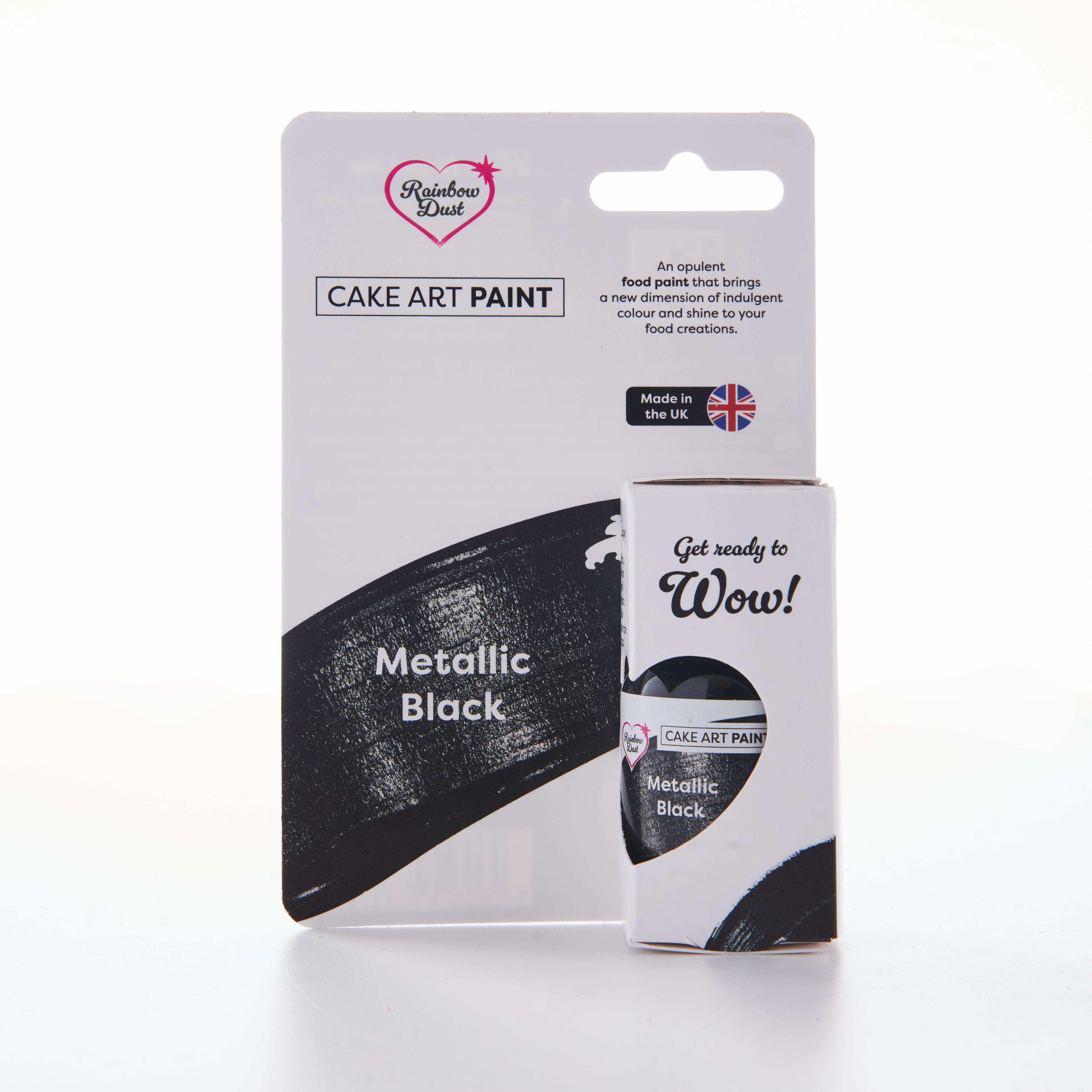 Rainbow Dust’s Cake Art Paint is a 100% edible food paint which comes in a range of metallic and pearlescent colours. Add a new dimension to your creations by applying straight from the bottle with a brush or sponge to ‘hard carriers’ like sugarpaste, set Royal Icing, macarons and chocolate.