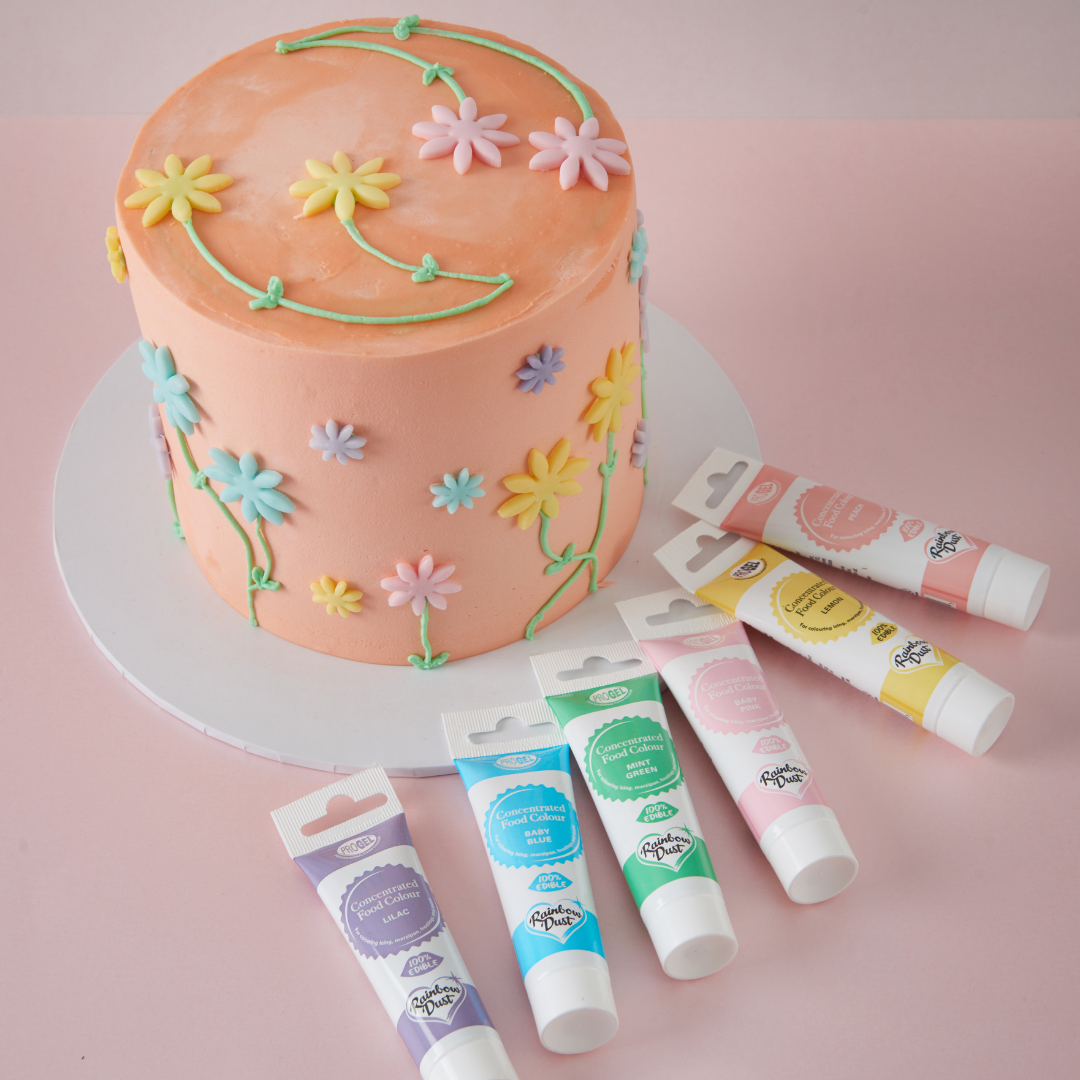 ProGel is the go-to food colouring gel for serious hobbyists and professionals. This multipack contains six of our best-selling pastel colours which can be used in a wide variety of cake designs: baby blue, baby pink, lemon yellow, lilac, mint green and peach.